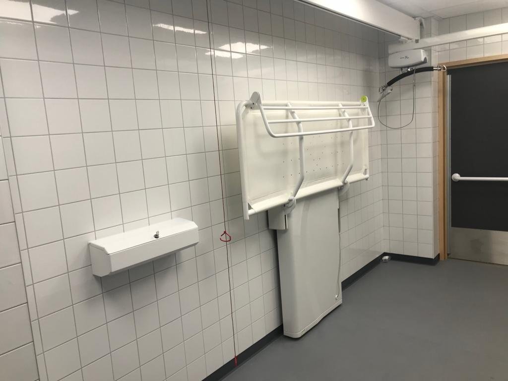 • An adult-sized height-adjustable wall-mounted changing bench (CTX Astor Bannerman)